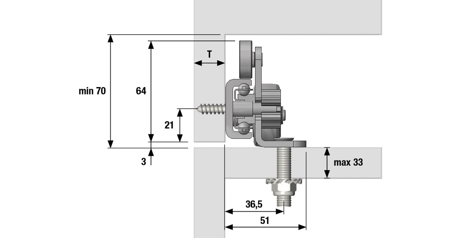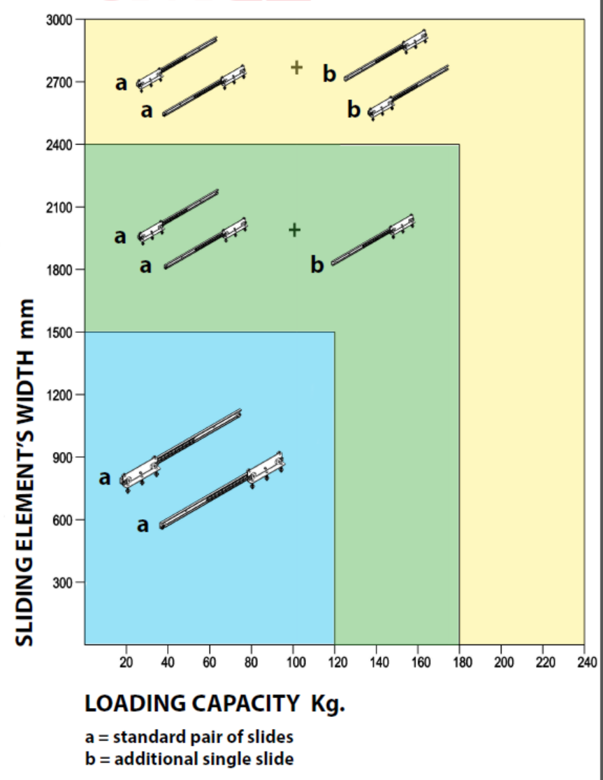 - The runner is produced in 3 different lengths and in a double configuration, the standard set for surfaces or tops that are no longer than 1500 mm and the optional additional single piece to be used in intermediate position for surfaces or tops longer than 1500 mm or heavier than 120 kg.
