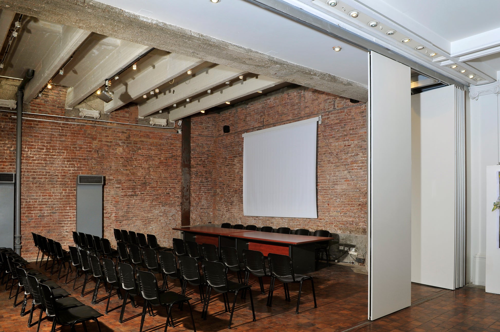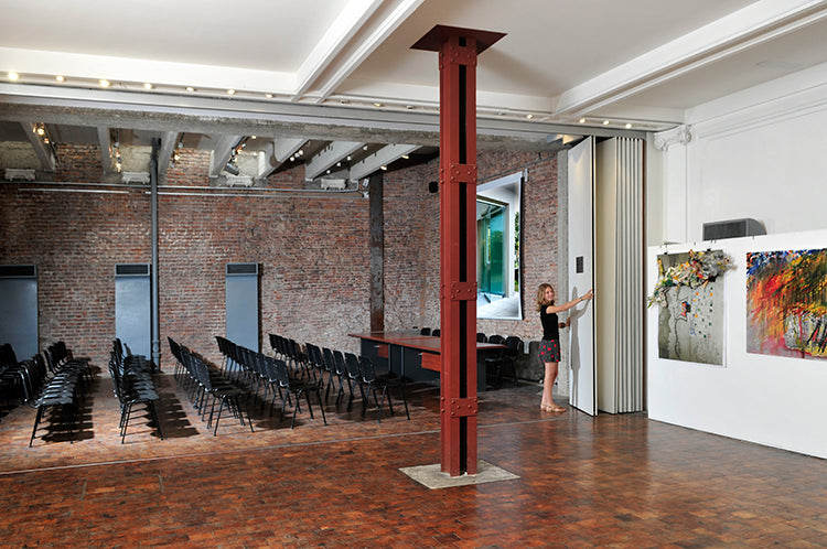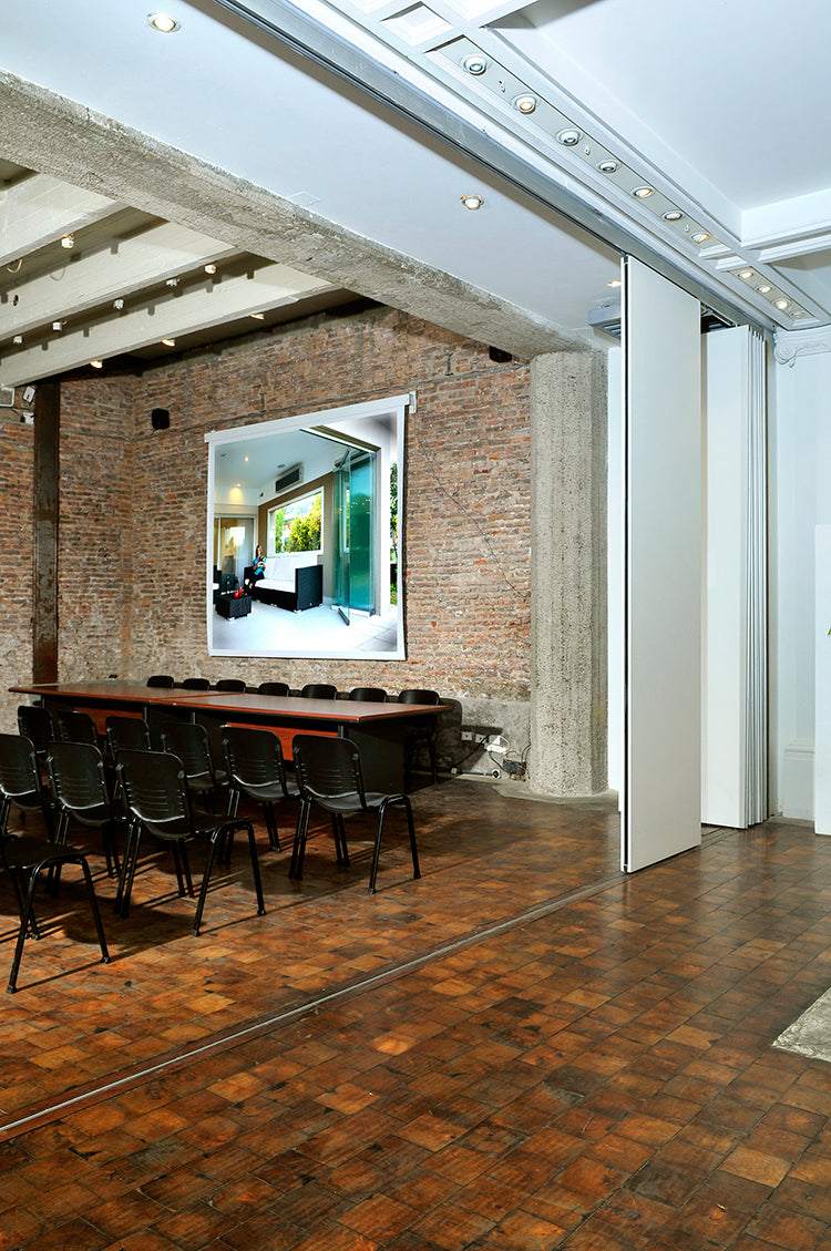 Hawa Variotec 150 enables the quick realization of all design concepts for room partitions. This hardware system allows straight running tracks / bottom guide channels and curved segments of 15, 30, 45, 60, 75 and 90 degrees to be combined to form customized configurations. Different trolleys are required depending on the door weight (100 or 150 kg / 220 or 330 lbs.).